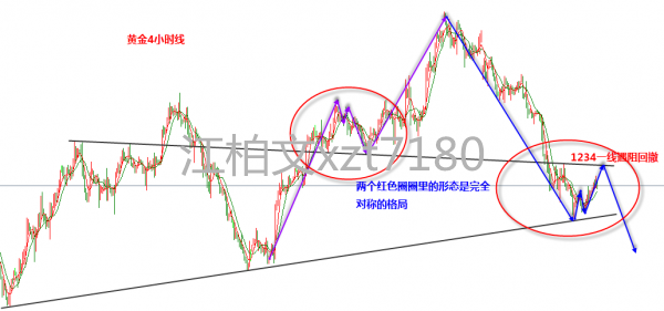 江柏文:5.15黄金1234对称性做空 近期很多投资者对 金价 多空走势有很大分歧,抄底的声音很多,做多的声音很多,笔者认为目前判断底部的成立有些武断,有些盲目。 消息面: 从近期消息面和经济参数来看:法国总统大选马克以绝对优势竞选成功,并没有出现黑天鹅,法国一片欢呼声,欧盟系统得到短期的维护, 黄金 避险降温;