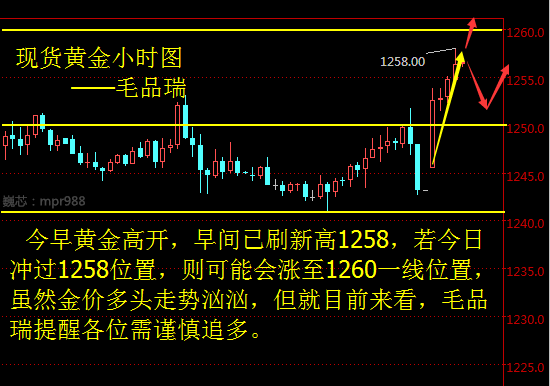 【北京时间3月28日毛品瑞/撰】昨天行情经过了一番大起大落曾一度上涨至最高点1260.92位置,随后又进行了一波跌势,最终收盘于1253.59位置,回到了1255下方。就昨天的行情来看,赚钱的机会还是很多的,若你昨天做的单是亏损的,那就得好好找找自己的问题所在了,如果找到了问题不及时解决的话,同样还是会陷入投资的绝境,所