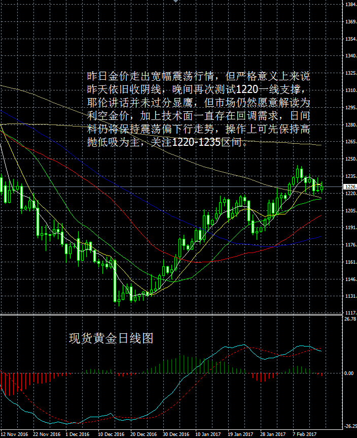 投资如同钓鱼,比的是耐心,拼的也是机会,行情转瞬即逝,出手看时机,震荡看耐心。守得住寂寞,才赚得了美金。像鳄鱼一样潜伏等待,像豹子一样快速出击。心中有底,处处是底。投资也好,做企业也好,要持久,心态就要平和。不要被行情的波动影响你的思路,才能做到心中有数,了然于胸! 昨日国际现货黄金于1225美元