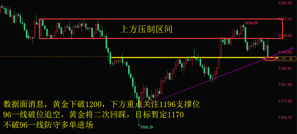 9月3日亚洲时段,现货黄金开盘后震荡下行再次失守千二整数关口。上周五,美国和加拿大谈判无果而终,特朗普强调不会轻易妥协,加拿大想要加入就必须完全按照美方的条款来。另外,根据外媒消息称11月中美的首脑峰会可能取消,本月初美在公众问询环节过后会否对2000亿输美商品征税值得关注,两大经济体关系恶化是金下跌的主要导火索。本交易日内,由于美国劳动节休市一天,今天的纽盘行情料将比较清淡。欧洲和英国制造业PMI数据是关注重点。欧银已经基本确定了明年夏天前的货币政策路径,英国在明年5月前在加息一次的概率不足40%,所以数据可能仅有短线的影响。如果欧系货币走弱,黄金可能同步受到间接压制。 在上周黄金整体处于