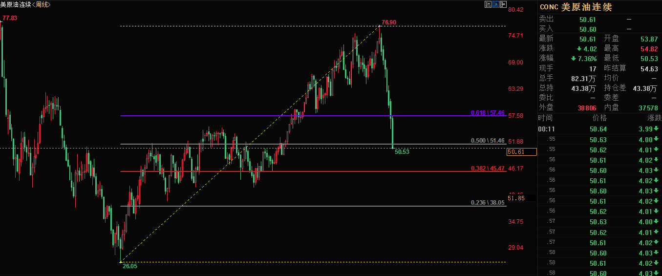 11月23日原油今日再创在震荡交投中跌至2018年低点,WTI原油跌幅进一步扩大至7%,跌穿51美元关口,最低50.85;布油跌幅一度扩大至5%,失守60美元关口;上海原油期货主力合约跌停,跌幅达5%。 在全球经济前景黯淡之际,市场新现原油供应过剩苗头。总体而言,今年全球原油供应大增,美国、俄罗斯和沙特这世界前三大产油国都提高了产量,其中俄罗斯和沙特增产了超全球消费量的三分之一。美国原油库存已经连续第九周增加,增幅高于远远市场预期,创出2017年3月以来最长连续增长纪录。 目前对于油价不断下跌最主要的支撑在于沙特能否主导OPEC减产,尽管市场预计石油输出国组织(OPEC)将在12月6日的会议