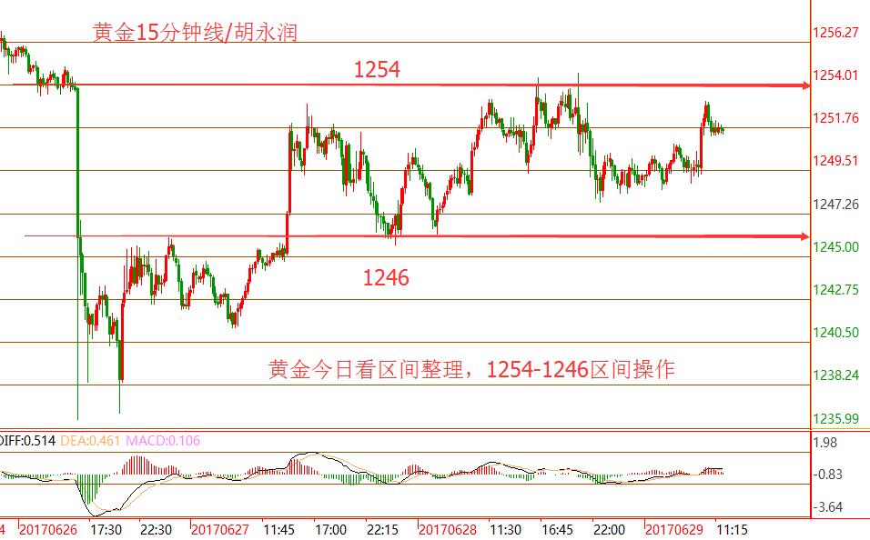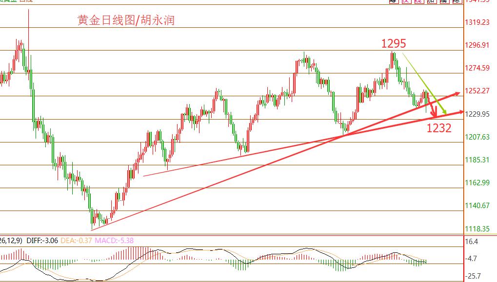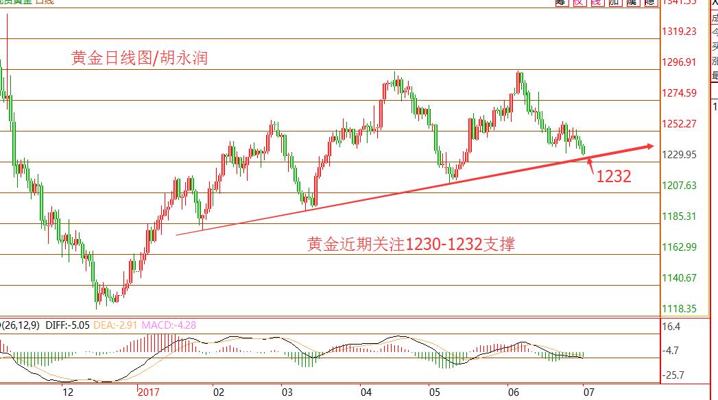 文/胡永润 不同的行情有不同的操作手法,所以我们每天在交易之前首先要做的就是准确的定位和划分行情节奏,唯有这样才能找到对应的策略。趋势行情讲究的顺势而为,极强极弱行情需要激进跟随趋势,否则就会错过顺势而陷入被动逆势。而整理震荡讲究的是锁定区间,简单反复执行。 黄金从日线图来看,目前在1235-1230附近,已经