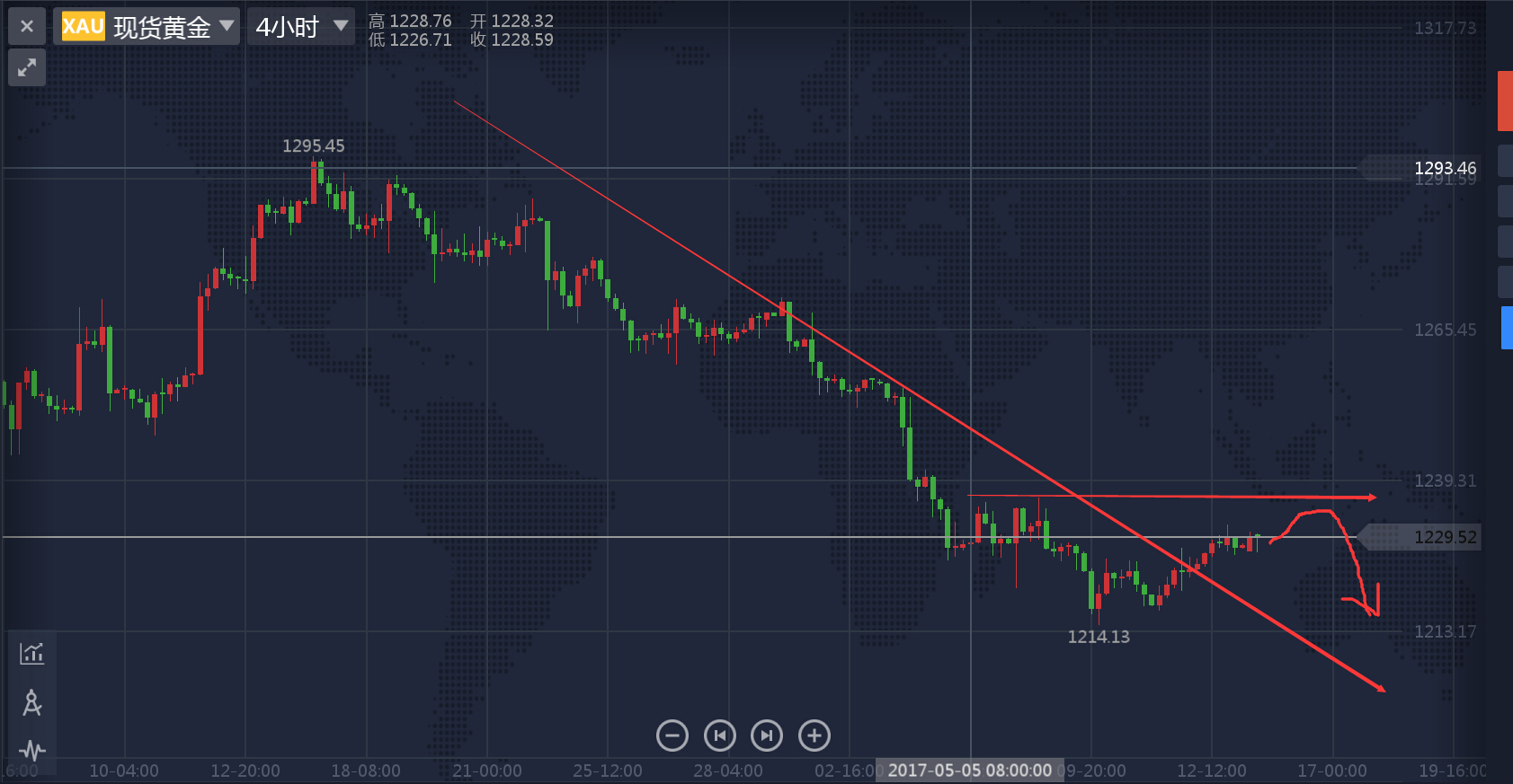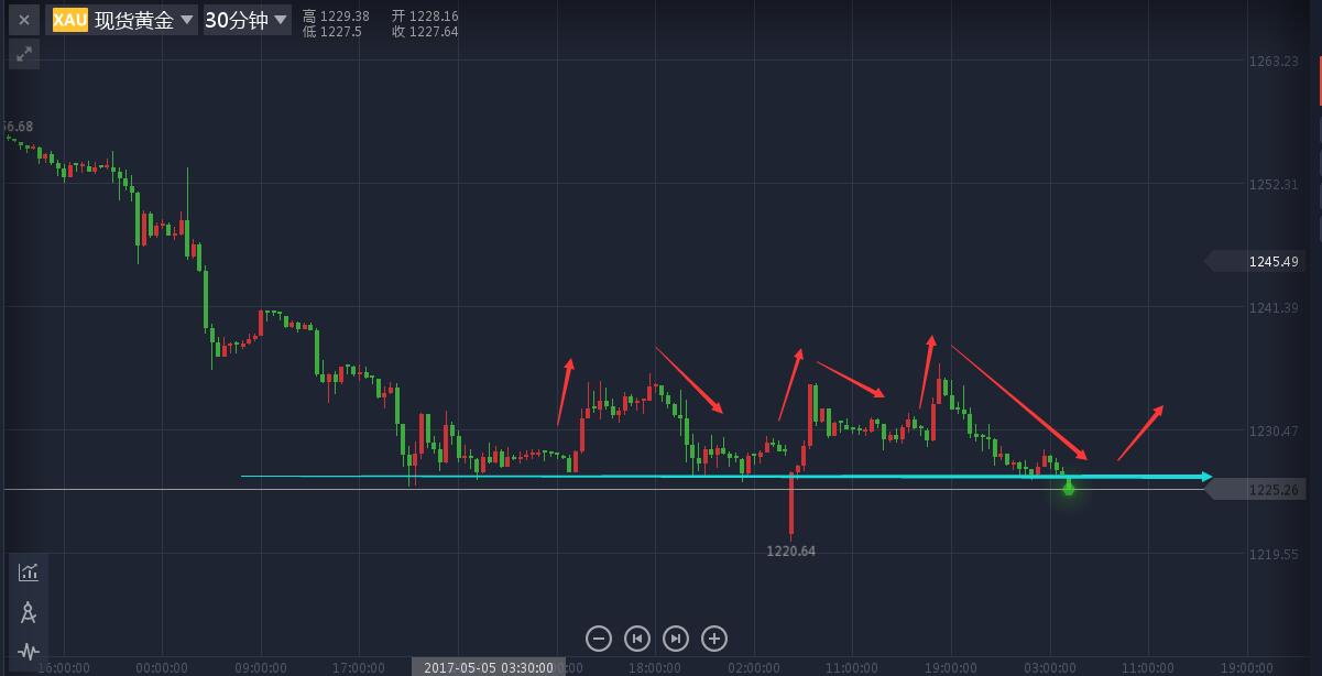 文/胡永润 进入四月份下旬以来,国际黄金价格从高位一直回落下跌,市场解读为是因为支撑金价的避险情绪大幅减退,其中一个是朝鲜局势的降温,一个是法国大选的落幕,整个市场透露出温和的气氛,并且在美联储利率决议之后,市场对于美联储是否会在6月加息表示肯定,使得金价承压从1290美元一直暴跌近70美元至1220附近。而在