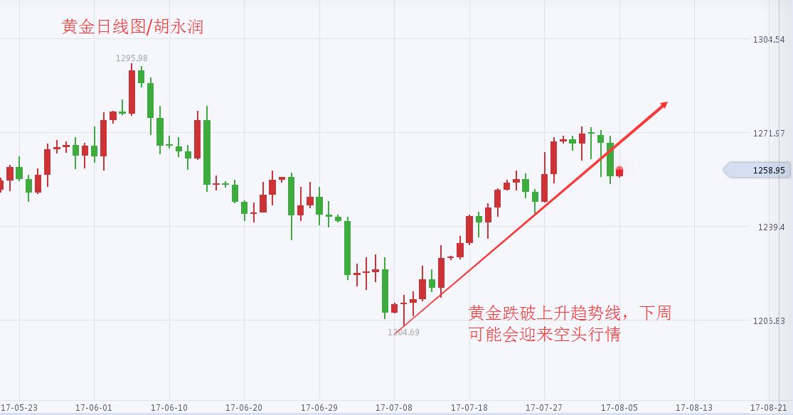 文/胡永润 本周交易日结束,有欢喜有悲伤,不管怎么样都已成为历史,投资不仅仅是们技术活,其实也是一门心理研究活,你不但要了解自己心理是怎么想的,且也要设想多数人是怎么想的,只有这样,我们才能完美把握好行情。获利不止是假设,最重要是去做,不是爱拼才会赢,而是知赢你才会拼。 黄金本周整体呈现震荡走低的态势,