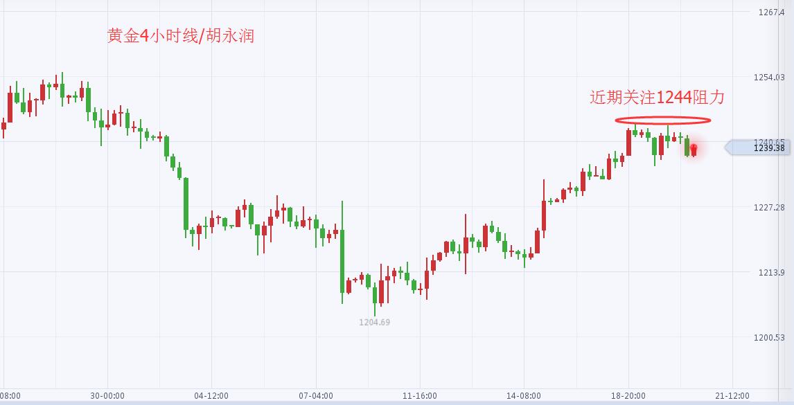 文/胡永润 这波黄金自1205的探底反弹,期初弱势区间1216-1208整理,后来突破拉高之后测试关键压力1224-1226之后,两次急跌回撤1213-1214之后企稳。结束了前面1296-1205的连续五个多周的空头行情。而后上周五强阳拉高之后确立强势。周一周二高位横盘之后不回撤持续拉高,奠定极强格局。日线连续7个交易日只有第四个交易日收