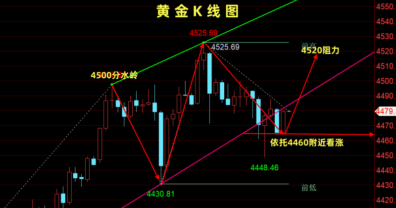 现货黄金: 消息面:周三亚洲交易时段,黄金价格(XAU/USD)延续强劲涨势,突破每盎司4520美元关口,创出历史新高,随后回落。当前市场环境下,黄金的上涨逻辑主要由避险需求和货币政策预期共同驱动。首先,地缘不确定性持续发酵,显著抬升市场避险情绪。近期围绕委内瑞拉的紧张局势不断升级,与原油运输和国际航运相关的不稳定因素,促使资金持续流入避险资产。 技术面:从日线结构来看,黄金延续明显的多头趋势。价格稳稳运行在100日指数均线之上,中期趋势保持完好;布林带持续向上张口,显示趋势性行情仍在延伸。不过,14日RSI已运行至70上方,进入超买区间,提示短线存在技术性整理或高位震荡的可能。若价格能够持