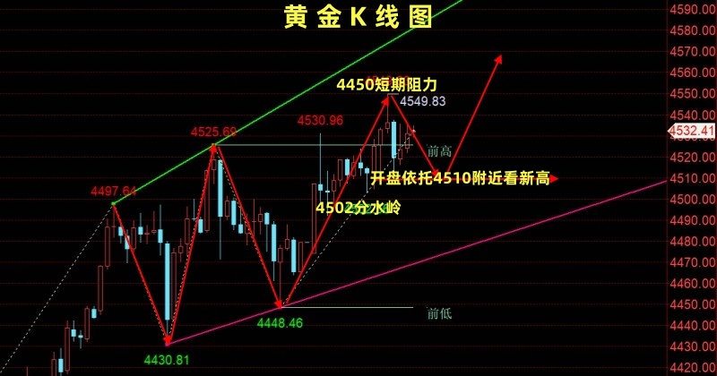 现货黄金: 消息面:周五(12月26日)在紧张的地缘政治局势推动下,黄金价格持续攀升,避险资产吸引力进一步增强,在2025年年末始终维持强劲的多头走势,现货黄金逼近4550美元/盎司,创历史新高,尾盘最终报收4533.34美元/盎司,涨幅1.19%,周线上涨4.49%。在市场押注美联储2026年继续降息、美元走弱以及地缘紧张局势升温的背景下,避险资金持续涌入,推动贵金属在年末流动性偏薄的环境中加速上涨。分析人士指出,此轮涨势不仅是传统避险交易的延续,更体现出在去美元化与供应结构紧张背景下,硬资产配置需求的全面抬升。 技术面:从周六凌晨收盘走势来看,黄金下探4510后迅速反弹,冲高4550后小