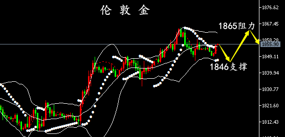 国际黄金消息面与技术面: 消息面:周二(5月24日)亚洲时段,现货黄金震荡微跌,目前交投于1850美元附近。虽然有美联储官员呼吁9月暂停加息,隔夜美元延续跌势,一度帮助金价涨至1865附近的两周高位,但该位置附近阻力极强,而且美国股市反弹,欧洲央行强化了7月份加息的预期,金价最终回吐了大部分涨幅。值得一提的是,5月6日低点、5月10日高点和1898-1786跌势的38.2%回撤位阻力都在1865附近,该阻力需要重点关注。另外,本周还将迎来美联储会议纪要,预计会进一步夯实市场对美联储激进加息的预期,这令多头有所顾忌。本交易日将迎来欧美多个国家5月PMI数据,投资者需要留意市场对全球经济前景预期