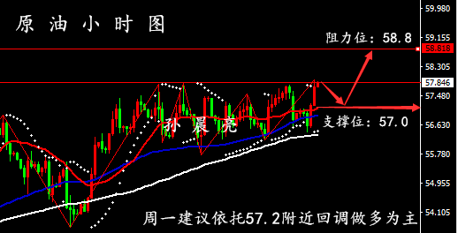 美原油基本面与技术面解读: ①、原油市场资讯:周一(11月18日)亚洲时段,国际油价小幅走高,徘徊近两个月高点,市场预计全球两大经济体接近达成部分贸易协议,乐观情绪推高市场。白宫经济顾问库德洛上周表示两国之间的谈判进入最后阶段,盖过了此前美国原油库存和石油产量都在创纪录水平的影响。尽管如此,OPEC下调来年需求预期,仍限制油价上行空间。美油价格自4月底以来仍下跌了约13%,OPEC表示不会进一步削减产量以防止可能的供应过剩! ②、原油技术面解读:上周五因美国高级官员的讲话提振了对美丨中达成贸丨易协议的乐观情绪,但对原油供应增加的担忧限制了涨幅,而后美原油开始走高,刷新日内高点57.97点位,