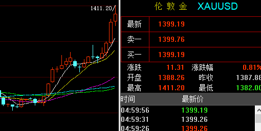 前言:作为一个投资者应该深知,投资不可能没有风险,不遵守游戏规则出局是迟早的事。没有招招都中,也没有招招不中的交易,我们应该做的就是稳健、谨慎、追求成功率,制定严格的交易纪律,才能保证在胜似战场的市场中分得一杯羹。我从来不承诺任何投资者利润,因为我是从这条路上走过来的,我深知风险的可怕,在我这里,我只强调控制风险,投资一定是从控制风险开始,只有控制住了风险,盈利才有可能,只有控制住了风险,获利也是自然而然。 贵金属基本面与技术面解读: ①、黄金资讯:周五亚洲早盘,金价一度打破每盎司1400美元,最高一度飙升至1,411.83美元,挨近13年9月以来的高点,涨幅逾越1.3%。盘绕美国、伊朗和沙
