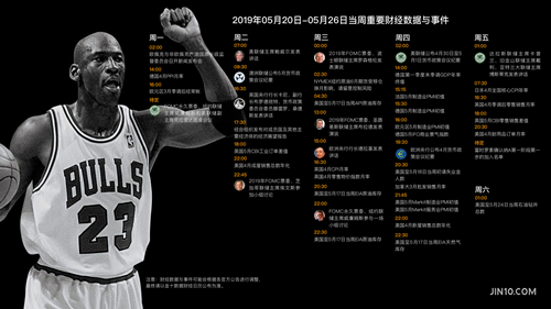 前瞻下周数据:周一(5月20日)关键词: 日本一季度GDP季率初值,欧元区3月季调后经常帐,美联储高级官员讲话。周二(5月21日)关键词:美联储主席鲍威尔发表讲话,澳洲联储公布5月货币政策会议纪要及澳洲联储主席洛威发表讲话,英国央行行长卡尼、副行长布罗德班特等官员讲话。周三(5月22日)关键词:英国4月核心CPI年率,欧洲央行行长德拉基讲话,美联储公布4月货币政策会议纪要。周四(5月23日)关键词:德国、欧元区、美国5月Markit制造业PMI初值,欧洲央行4月货币政策会议纪要,欧洲议会换届选举。周五(5月24日)关键词:新西兰4月贸易帐,日本4月全国核心CPI年率, 美国4月耐用品订单月率