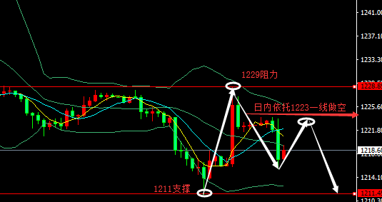 前言:晚间特朗普发表讲话称,欧盟等地区一直在操纵汇率并降低利率,而美国在加息,美元也变得越来越强。强势美元正削弱美国的贸易竞争力。货币紧缩政策会给我们现在的工作带来伤害。欧洲央行拒绝就美国总统特朗普有关指责欧盟进行货币操纵的言论置评。投行分析称,这些言论在损及美联储。导致黄金短线上冲1230关口 ①黄金市场:黄金近期多空博弈激烈,大幅来回洗盘,没有明确方向。目前下破1236关键位置后,空头加速下行,不断跌破支撑刷新年度低位,最低至1211位置得以支撑,跌势有所缓解。当前走势来看,早间急跌我们没追空,思路正确,并及时给出了1215附近做多,当前黄金已企稳1220上方到达1224一线,欧