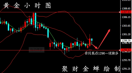 黄金行情分析 黄金运行于布林下降通道中,上周金价探底拉升很多人都认为1282是底部,突破1300后要冲击1315位置,但是在美联储加息将近和美元强势上涨的利空环境下,压制金价反弹,尘本心多次强调金价在未突破1308日线趋势线阻力之前上方空间有限,不过分看多,本周一,开盘跳空低开至1296附近,同时上周五K线收取阴结束连阳