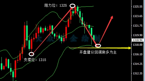 黄金 上周黄金虽然借助了数据的影响突破了1302-1318的震荡区间,但周五并未延续太大的涨势,仅仅在1326附近就回落,多头力度薄弱,这是否暗示黄金多头未来困难重重呢?恰恰相反,后市黄金多头前景良好。大众论金个人认为虽然黄金短线趋势面临小幅调整,但是大趋势上看多思路不变。因为上周尾美元暴跌展开回落调整,短期见顶