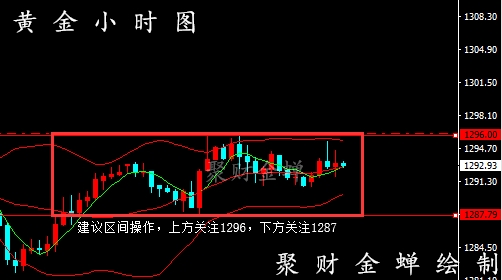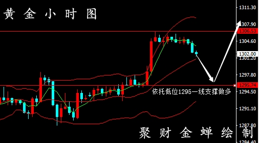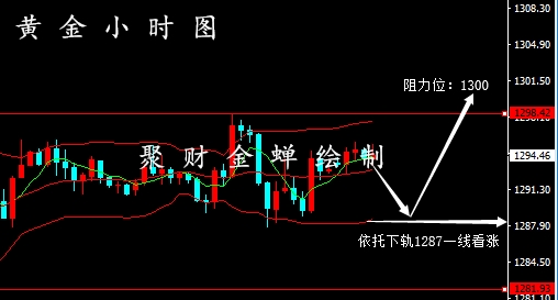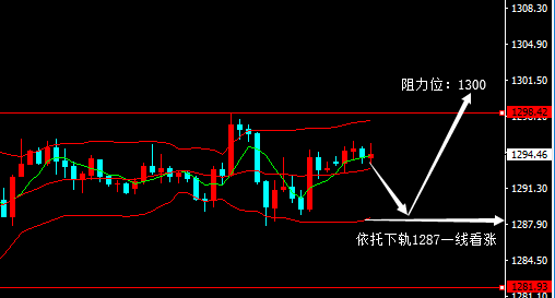 黄金行情分析 从技术面来看,周线上,黄金跌破布林带下轨,在1295-1296附近形成阻力,均线指标死叉,MACD死叉,空头占据优势,不过STO指标接近超卖区域,且当前价格有所反弹,操作应尽量以反弹空为主。日线上,均线指标同样空头排列,短周期指标下行,走势偏弱,不过STO在超卖区域形成金叉向上运行,且金价突破5日均线压制,