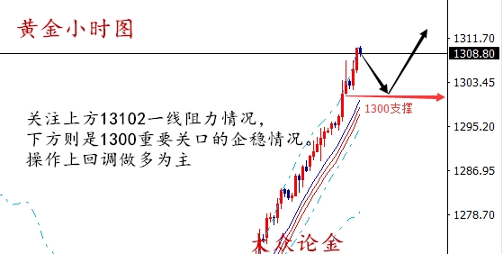 消息面:现货黄金周二在开市之后短线拉升5美元,日内最高上探至1307.72美元。美元指数下滑和避险需求促使金价上扬。金正恩周一威胁美国称,核按钮就在他的桌面上,万一朝鲜受到威胁时他随时可以发动。伊朗反政府示威行动仍在继续,该国面临着近10年来最严重危机。伊朗抗议者甚至冲击警局,紧张局势一触即发。截至昨夜至少有