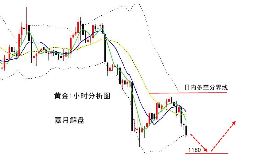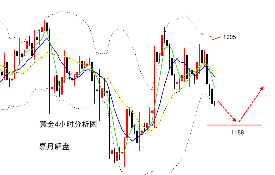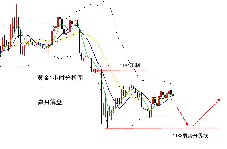 因为昨日黄金单阴21美金的跌幅,一定会有很多人立马跳转阵营,从上周的反复做多当中,变成后市的任意空。这样的想法,就恰恰走进了主力的圈套,要知道在市场上,永远都是少数人能够取得胜利果实。昨日80%的人看多,最后价格却跌下来,就是最好的解释。有时候揣摩人心,也会成为投资的必修课程。 单阴难成事,尽管他跨越了21个点又怎样?行情还是保持在震荡中,并且会一直受到美元指数影响。昨夜,金价运行到1194附近之后,就开始出现明确的止跌。主要是表现在,小时线下引线较长,多次下探之后的快速回升,以及小阳线的现身。 如此,我们在昨夜布局于1188的多,1186的加仓多,就可以安心持有了。震荡区间在进一步扩大,说