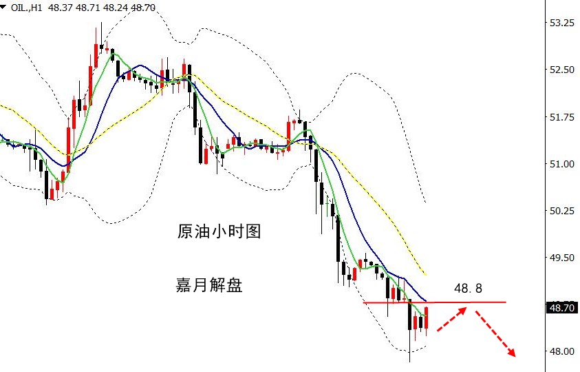 黄金 在白盘经历了短暂的回落冲高之后,看似行情走成了他弟1245之后的回升,实际上,黄金上行再一次于1250位置受阻。以至于就算欧盘行情实现了破高,但是对于目前的短线操作而言,还是要先空。除去上方压制,小时图上的布林带缩口,MA5日均线拐头向下,空仓可在1248-50高空。 至于白盘在1247附近的空,可以继续持有,在条件允许的情况下,可以考虑1250附近加仓。至于明天后半夜的美联储加息与发言,另谈 原油 早间油价连阴下跌并破位前一日低点49美元之后,午间小幅反弹49.2附近顺利确定方向,好在前两日大阴线压制下,价格在欧盘再一次加速,给到第一目标位置48。目前油价小幅反弹,运行在48.5附近