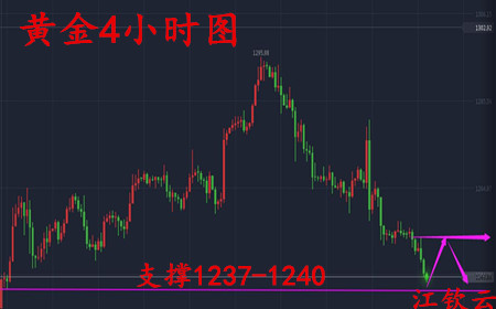 江钦云:6.20黄金不破1240中线多单,原油短线高空 目前黄金原油受消息面的持续影响,技术面上全线走空。全世界的分析师和投资者都在看空黄金原油,支撑位一次次下探,看似没有底线。追空的朋友建议反弹高位做单,抄底的朋友建议在稳定行情,能有明确的消息面支撑再作考虑。 黄金:从4小时图来看,黄金可能继续下跌,如果目