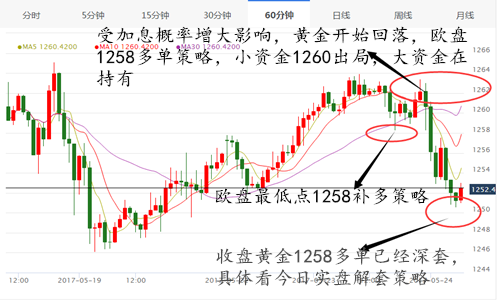 江钦云:5.22-5.23黄金低多斩获60点,原油利润空间低 做投资,都是为了赚钱,俗话说得好,有钱不赚就是王八蛋。最近黄金行情至1220附近震荡上行之1260以来,市场利多黄金的消息面层出不穷,多头强势,只要回调就是做多的机会,赚钱的机会,不管短线还是中线。买多就是利润。这样的行情若还是亏损,那就要找原因了,也可以找