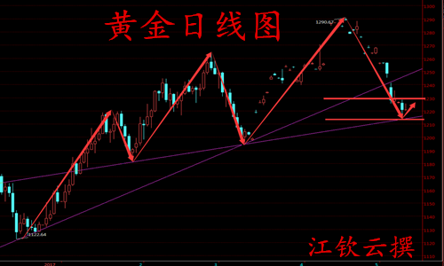 江钦云:5.13-5.14黄金原油周评分析总结及策略 周末愉快,今天天气比较炎热,白天不适合出行。刚好有时间,让我们来谈谈行情,黄金至1295未破千三以来,开始一路下坡,单边行情势不可当。至本周二最低点位1214.19,黄金如此之空势,肯定有不少的朋友做了空单被套了。原油也是同步,具体原因不尽相同,在这里就不说了。现在
