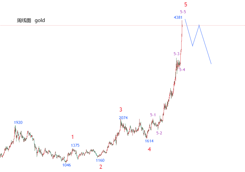 国际黄金: 波浪结构分析:周线图来看,上周黄金冲高4381大幅下跌至4004,我们判定黄金1046向上五波推动完成,如下图,1046-1375为一浪,1375-1160为二浪,1160-2074为三浪,2074-1614为四浪,1614-4381为五浪,五浪为延长浪,五浪内部目前大小级别结构已全部走完,后市黄金整体以4381为防守向下看调整。同级别对应1920-1046波段。也就是说,黄金接下来可能会进入慢长的调整走势。 4小时图,4381向下三波或五波调整,从现有结构来看,我们暂时看作ABC结构,4381-4004为A浪,4004-4154为B浪,4154向下为C浪,目前4154-3886