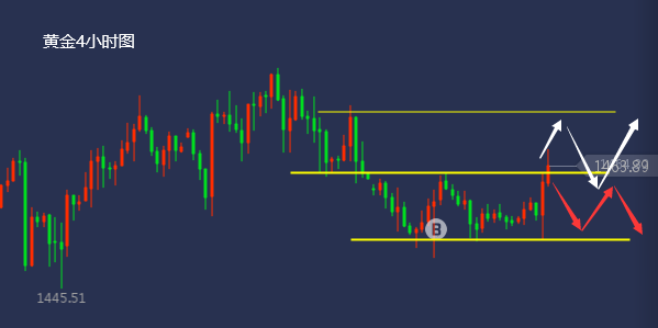 踏不准节奏的交易,只会让操作乱了步子,凡事讲究方式方法,盈利与损失必然存在其原因,不必跟市场较劲,要适应市场的脾气,顺着市场的方向去运行,你会发现短线虽然有赚有亏,但是整体仍然会保持稳定,这就是操作的技巧,进出场点位,仓位管理,顺势加仓等等,方法没有好坏之分,重要的是合理的风控,加上过硬的心态,这个你必须要学会! 黄金原油日内行情解析: 黄金方面:因美国感恩节假期影响,最近两天市场交投清淡,现货黄金持续承压在1460下方横向整理,由于没有基本面以及经济数据的影响,现货黄金波幅有限,多空方向不明,从大结构走势来看,目前黄金仍处于多头调整走势中,小结构走势上偏空运行,下方重要支撑位在1445附近