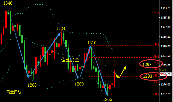 跟上节奏时刻准备着才是想改变者应有的态度,机会总是留给有准备的人!黄金此次由1310到1270大跌如果你没有跟上,那你是否还要失去下一次财富的机会,正所谓机不可失,时不再来,机会总是在犹豫中稍纵即逝。本周市场将迎来美国GDP等重磅数据,美指是否要再次一飞冲天?黄金多头能否借此契机力挽狂澜?做好准备才是迎接下一次机会的最好态度。投资市场风云变幻,唯有不变的是初心,不管明日如何,佳玉品金愿携手与你一起在投资市场越走越远!感受佳玉品金黄金实战,感受佳玉品金交易不变之初心,从每一天开始! ===黄金走势分析=== 目前1280一带已经形成较为明显的压力区域,当前已经连续反弹三天,多头无力,不能取得突