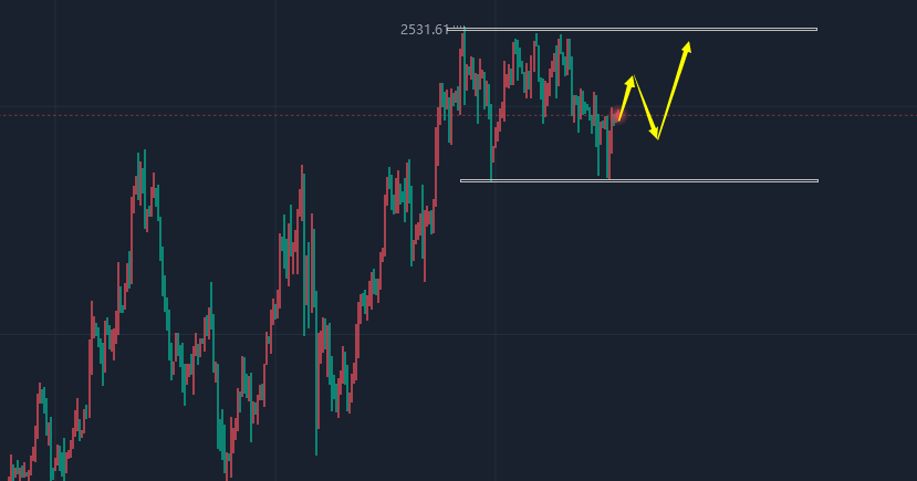 黄金走势分析: 美元近期慢跌了,经过本周的反弹,最高在101.8,周三,周四出现延续性的回落,目前在100.9,虽然回落的力度不是很大,但改变了前期的强势状态,所以,现在要说美元后市要大涨,还缺少有利条件,当然,在保持这个看法不变的基础是要关注9月众多数据影响,比如今天的非农数据,下周的CPI数据,以及美联储利率决议,所以,9月美元行情的变动预计也很大。截止到周五,黄金在本周的表现总结一下就是宽幅震荡,周一,周二下跌,最低在2470,其中下跌的走势完全抓到了,周三,周四上涨,最高在2523,错过了这波反弹,大区间保持在2523/2470,上下接近55美金。那么接下来的行情就比较明确,关注日内