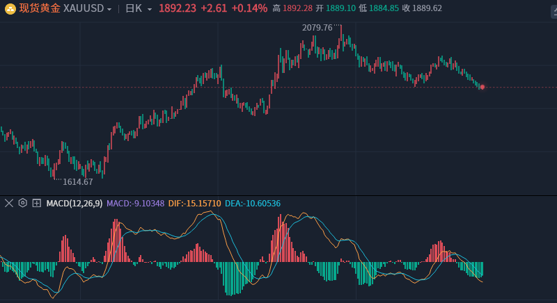 势不变则守,势变则随,顺应市场的节奏去进行,而不是与趋势背道而驰,行情绝对不是靠臆想,而是靠不断的分析和推断,找出将会进行的大概率事件,对于短线交易而言,多和空交替进行很常见,而一旦行情选择方向走极端,那么必然会势如破竹般的进行,所以思路清晰,加上遵守原则,方能够保持稳健盈利! 黄金走势分析: 金价周二在五个月低点附近徘徊,因美元走强和债券收益率上升削弱了黄金的吸引力,同时市场焦点转向本周晚些时候举行的杰克森霍尔研讨会,以寻找更多有关利率前景的线索。指标10年期美国公债收益率日内回落。不过,仍接近15年最高。与此同时,美元上涨0.2%,使得黄金对其他货币持有者而言更加昂贵,限制了黄金的上行空