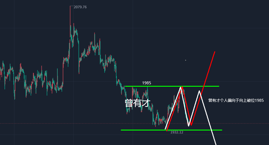 人的聪明绝不在投机取巧的技能方面,而在于脚踏实地,在于善良、勤奋、认真、守信和对正义、真理的执着追求和坚守。你可以踏上投机的道路,但绝不会因为善于投机而成功。当你看到一个游刃有余的高手,他的背后一定隐藏无数血淋淋的伤口,九死一生,概莫能外。因此,保持谦虚审慎的态度,客观的看待市场,保持学习进步的心态,才能够不断前行! 黄金走势分析: 黄金自2080下跌开启了调整走势,5月19日以来处于1985-1952区间震荡,黄金在下破1952后并没有很好的延续下跌,而是在触及1932低点后一直维持在1985下方震荡,目前市场期待着通胀数据和下周的美联储政策会议,以进一步明确美国的利率路径。在数据前,市场