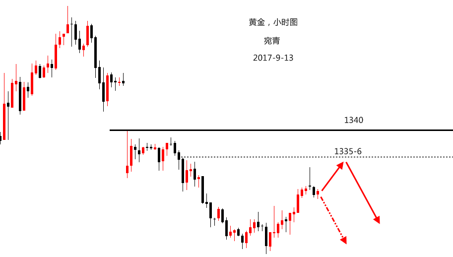 命运总是不如愿。但往往是在无数的痛苦中,在重重的矛盾和艰难中,才使人成熟起来,坚强起来;虽然这些东西在实际感受中给人带来的并不都是欢乐。 黄金,本周在跳空低开之后走起了宽幅震荡,看似是1340开始下跌,至1322反弹到1335后继续下跌,实则一直保持在1321上方震荡,但今日的格局和周二有所不同,昨日的下跌来得果断,