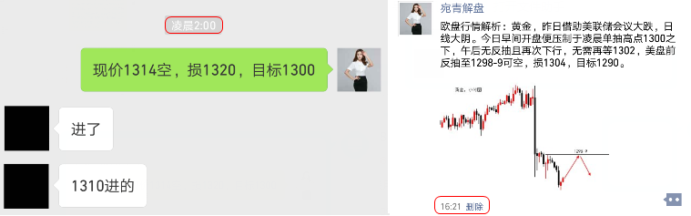 读书有厚度。人生要多读书多学习,活到老学到老。学历史能使人深沉,学哲学能使人聪明,学数学能使人严谨,学文学能使人浪漫,人的知识结构要博中有专,每个人的文化综合素质是多年积累形成的,博览群书,才能厚积薄发。 黄金,在昨日走了极弱。早间低开后迅速下跌,触及前期低点1315附近后反弹,我们周评布局的多单顺利进场