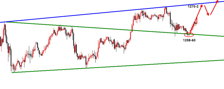 不要是总为过去的事后悔,那你会很难继续前行。不要沉溺于往事。活在当下,看向未来。沉溺在亏损的失败中,就会走不出来,以致后面的投资都收到其影响,只有正视盈利与亏损,冷静面对,合理分析,才能博回损失赢取利润。 周初,黄金走势看似良好,延续上周的涨势,在回调后继续冲高1265,而后一直保持1260上方震荡,大家都