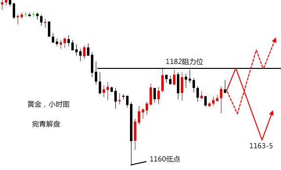 每一次发奋努力的背后,必有加倍的赏赐。莫要去找借口失败,只找理由成功。生活总是会给人烦恼,人生无完美,曲折亦风景。人生的意义是不断的追求。不要等错过了才悔恨,不要等老了才怀念。时光一去不回头,抓住每一个当下,再苦再累也要奋斗飞翔。 黄金,到这个点简单说说。首先是早间的下跌,预料之中,幅度稍大一些罢了,在1186附近两次确认,小时线收下引线较长k线,震荡三小时才开始呈现出回升迹象,实为不强,所以我们1187多单的目标在1192-3可出局,大仓可减仓,看晚间反弹力度再决定做空的点位。 对于空仓的朋友来说,这就是要讨论的最重要的一点,做空点位。如果按照想法来看,肯定该是需要去1199-1201范围