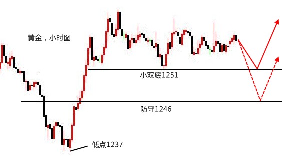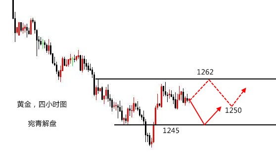只要去奋斗,就会有成功的希望。当机会来临时,你要好好地把握,因为机不可失,失不再来;也许谨慎是好事,但是过分地犹豫也会误事,如果不亲自去尝试,你永远不知道自己有多强大,即使失败了,那也是一笔宝贵的财富。 黄金,到这个点简单说说。早间已经分析过今日的重要点位1245,这是昨日的反抽高点,同样,因为晚间最低到1238,没有继续向上破底,意味着震荡,所以在早盘中,强调不要低位追空,这是在震荡行情中比较忌讳的,地板空与天花板的多能扛回来是好的,但走处反向单边,就很难受了,故1245是进场位,而不是防守位。 至于1242轻仓空,是为了能够保证进场,毕竟像昨日那样的行情,如果等待,就没有了机会,轻仓加上
