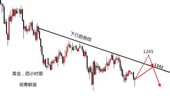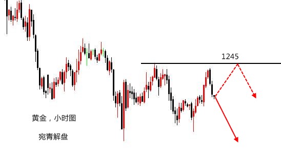 人生,活得再漂亮,也会有不如意的时候,生活,过得再潇洒,也会有不满的时候,人生不会一蹴而就,在每个过程中,都要付出巨大的努力,生活,在喜怒哀乐间走走停停,每一步都走得不容易,每段路都是在弯弯曲曲中成长。不知道会遇见什么,只知道阳光这么好,别辜负了今天。 黄金,昨日的空单拿的心里舒服,由1245最高点做空,目标看1238,美盘下行非常漂亮,本周第一天喜迎开门红,在欧盘不破底的情况下,建议还是保留部分1245空单继续下看,才没有错过这波下跌。 实际上,在进行预估的时候,本人有些高看金价的反弹能力,不仅仅是我,市场上有多少人还在抄底,就可以看出双底的诱惑力有多大,我们虽然不做抄底打算,但反弹的风险