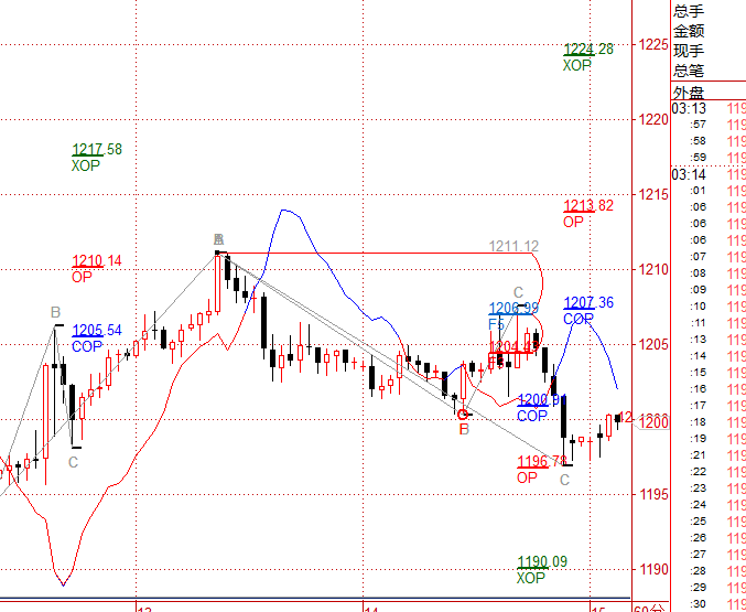 现货黄金昨日按预期在f5=1207处受阻开始回落 1207附近空单也成功止盈 行情下跌到目标op=1196处再次支撑 开始反弹 昨日提到1197附近做多 做了多单的继续持有 没有多单的建议现价1199做多 破1196止损 上方继续看1207 1210 1213附近 个人观点 仅供参考