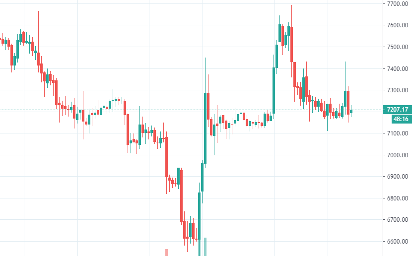 BTC昨日大盘冲高回落,触及7200后反弹,但反弹量能偏弱,没站稳7400便再次跌落,最低点到达7161附近,当前价格在7237震荡,从成交量能来看,反弹的量能偏弱,再次下跌的量能也偏弱,目前的区间是二次探底深V反弹后的整理区间V:btc9946,具有一定的支撑力量,盘面不可过分看空,短期仍有概率再次反弹。短期支撑7060,压力7420,由于近期上下波动较大,赚了注意减仓止盈! BTC操作建议 1、建议在7200-7100附近做多,止损100点,目标7300-7400