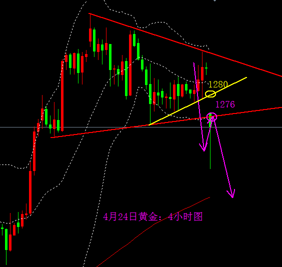 甘书咏:4.24晚间黄金震荡走势操作分析!原油分析依然看空! -----黄金市场分析----- 日黄金受法国第一轮大选影响,跳空低开低走。周线级别上,上周收的这根阴线和顶部的阳线在高位形成了平台顶部结构,结构顶部1295附近不破,黄金周线级别看空。从日线来看,一直受到自1375以来的下行趋势线的压制只要此线不别破坏,黄金空