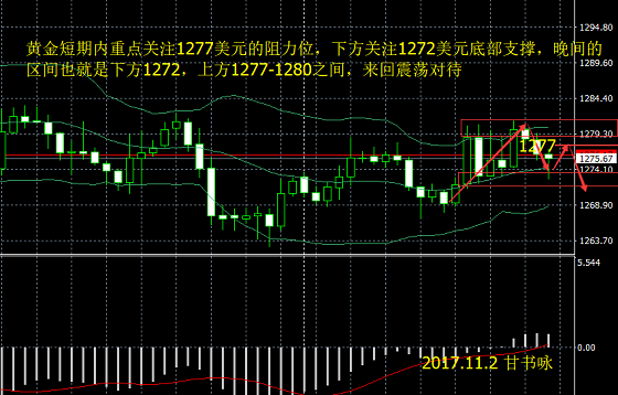 甘书咏:11.7避险推升黄金重回1280 日内黄金原油操作建议 隔日(11月6日)金价于11月6日上涨逾1%,因地缘政治风险推动投资者买入避险资产,此前黄金连续三周下跌。同时,美元兑一篮子货币下滑,也提振黄金,现货黄金涨1%,创6周来最大涨幅;油价周一同样大幅上涨,美布两油均触及2015年7月初以来最高水平,因沙特王储通过肃贪巩