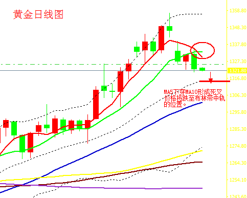 甘书咏:黄金反弹无望 9.14黄金操作分析 国际黄金周三(9月13日)亚市早盘开于1331.54美元/盎司后,短暂上涨后转跌,金价震荡下行,不断走低。欧市金价反弹,录得日内高点1334.65美元/盎司后转跌。美市金价盘中跳水,短时间内暴跌逾10美元,录得日内低点1320.58美元/盎司后转盘整,多空争夺激烈,终收于1321.83美元/盎司。周