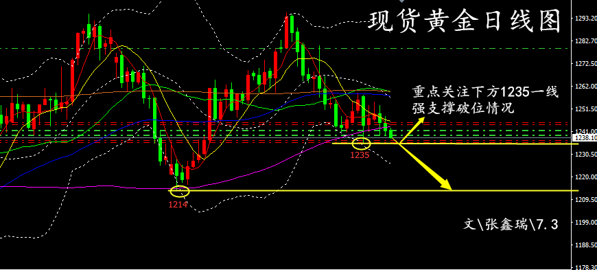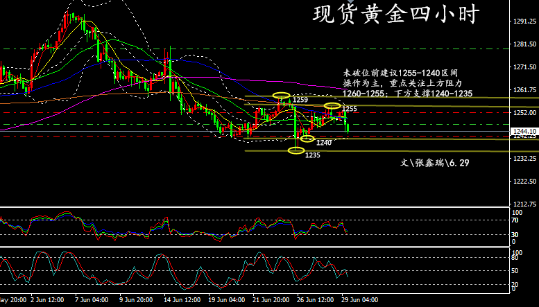 近期行情回顾 经历6月初开始的一波下跌之后,黄金价格一度出现短期反弹,但6月26日的闪崩打破了反弹的趋势。除了6月之外,今年已连续5个月上涨,部分原因归功于最近的地缘政治紧张局势,包括叙利亚的敌对行动,意大利银行的救助以及美国总统特朗普的**和英国的退出欧盟谈判,本周算是跌沓起伏,昨日黄金最高触及1253一线后