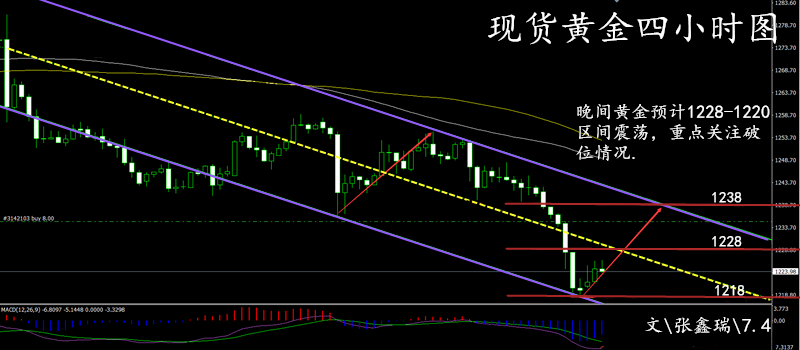 消息面 今天(7月4日)是美国的独立日假期,然而朝鲜似乎挑衅般的选择在今天又试射了弹道导弹,在今年5月份,朝鲜每隔一周就试射一次导弹,似乎已经形成了规律,然而对于黄金市场来说,在美国独立日假期试射导弹,的确可以给金价带来短暂的回调,行情走势也确实如此,今日开盘之后,黄金价格今重新站稳1220美元并且小幅上涨