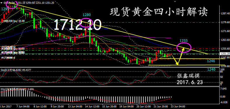 消息面 国际现货黄金周五(6月23日)上涨,美市盘中最高上探至1258.81美元/盎司,攀升至一周高位,受到美元走低和世界各地的政治不确定性的支撑。但美国进一步加息的预期限制了金价的涨幅。据外媒消息,通俄门剧情又有了反转。美国总统特朗普日前称,他没有与美国联邦调查局前局长科米私人谈话的录音带。他此前提及的所谓二人