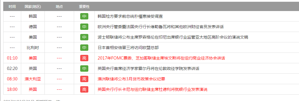 3.21日财经早知道,今日做单必关注的经济数据 文|垂紫怀金 每个交易日早上,垂紫怀金将提供权威的当日财经重点关注和上个交易日要闻重点回顾,敬请关注! 今日重点数据关注 一、全球财经要闻 1、3月29日,英国下周三启动脱欧程序。北京时间周一(3月20日)19:30,英国首相发言人发表声明称,首相特雷莎梅将在3月29日(下周