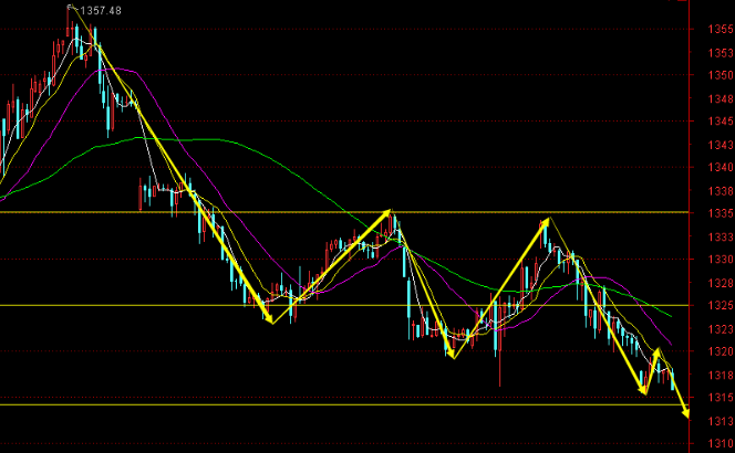 天添创盈:9.15周线收官之战,现货黄金、原油欧盘操作建议 现货黄金: 本周黄金价格整体呈震荡下行的走势,其中两个交易日走了探底回升,也促使日线形成了阴阳循环的收线格局,尤其昨晚,在下跌至1315美元目标支撑位置后,短线逐步收复跌幅,突破1330美元一线试探到了1334的阻力位置,在一个交易日内同时触及关键的支撑和阻
