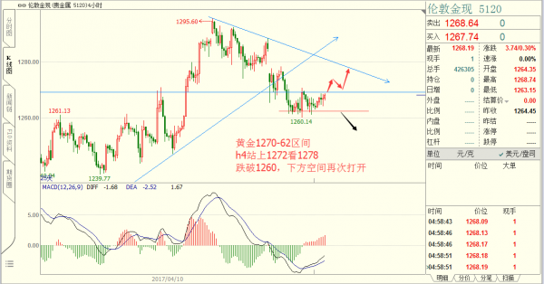 投资市场永远有四个层次:保住本金,控制风险,赚取收益,长期稳定持续赢利。不要因为一天的输赢定结果,赚钱是偶然还是必然,是凭真功夫还是凭运气,在市场上能活着的肯定是最终能够长期持续赢利的投资者。交易就是一个好的习惯,严格执行你的交易计划。 黄金周二震荡收低,亚市早盘探高1278附近承压一路保持震荡弱势,欧
