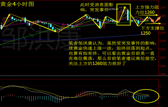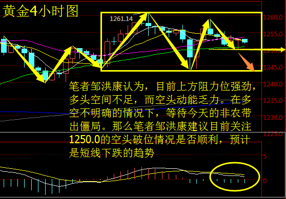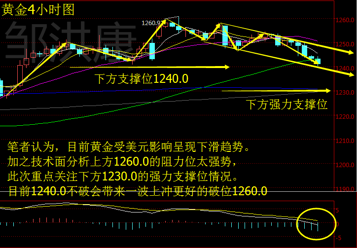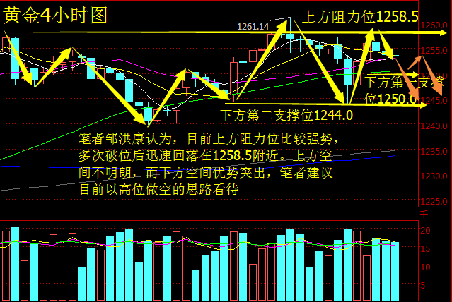 文/邹洪康 对于昨天套单的我们要明确的一点就是黄金之前是1248-1254区间内震荡!那么针对于1253美金以上区间追进多单的朋友,现在亏损10美金以上,相对亏损程度严重,仓位大的笔者邹 洪 康建议在反弹至1246-1249考虑减仓出局,然后布局空单,等回落之后获利弥补亏损,等待1240的破位情况如果不破位可以单手进多;破位空单可