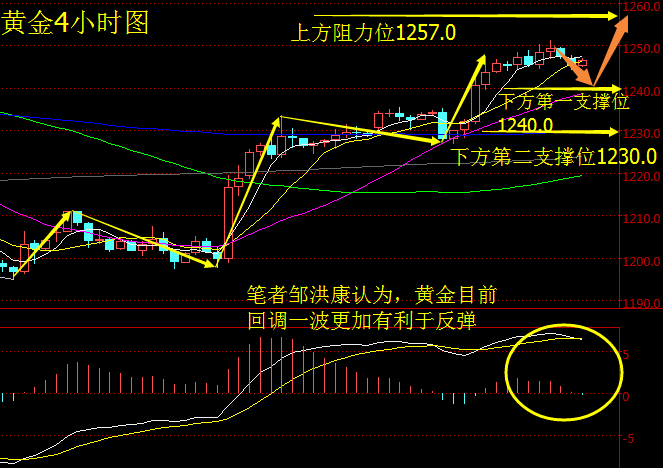 文/邹洪康 上周总结:受上周美联储假加息的影响,黄金周一以小阳线报收,周二盘中下跌至1226后一路拉升21美金,日线以大阳线报收,周三震荡上行,周四黄金冲高触及1253遇阻回落,日线结束六连阳,以阴线报收,周五黄金下跌至1240获得支撑,尾盘冲高至1251回落,周线在1243价位以阳线报收,本周最高价1253,最低价1226。